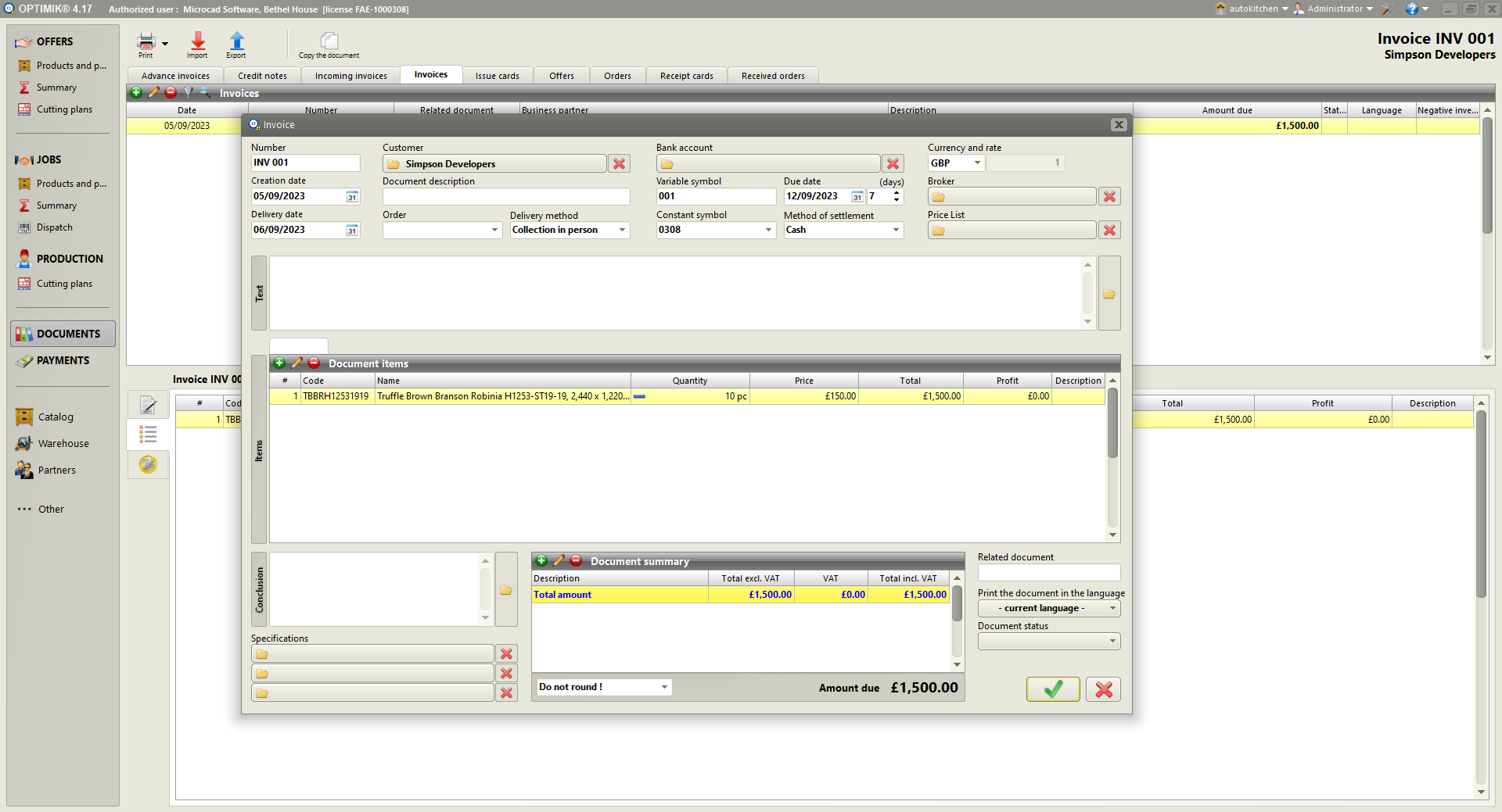 OPTIMIK will help you create offers quickly and comfortably. All you have to do is enter the products and their components (or select them from the Catalogue), and the program will automatically calculate prices and quantities of all necessary materials, as well as cutting plans.