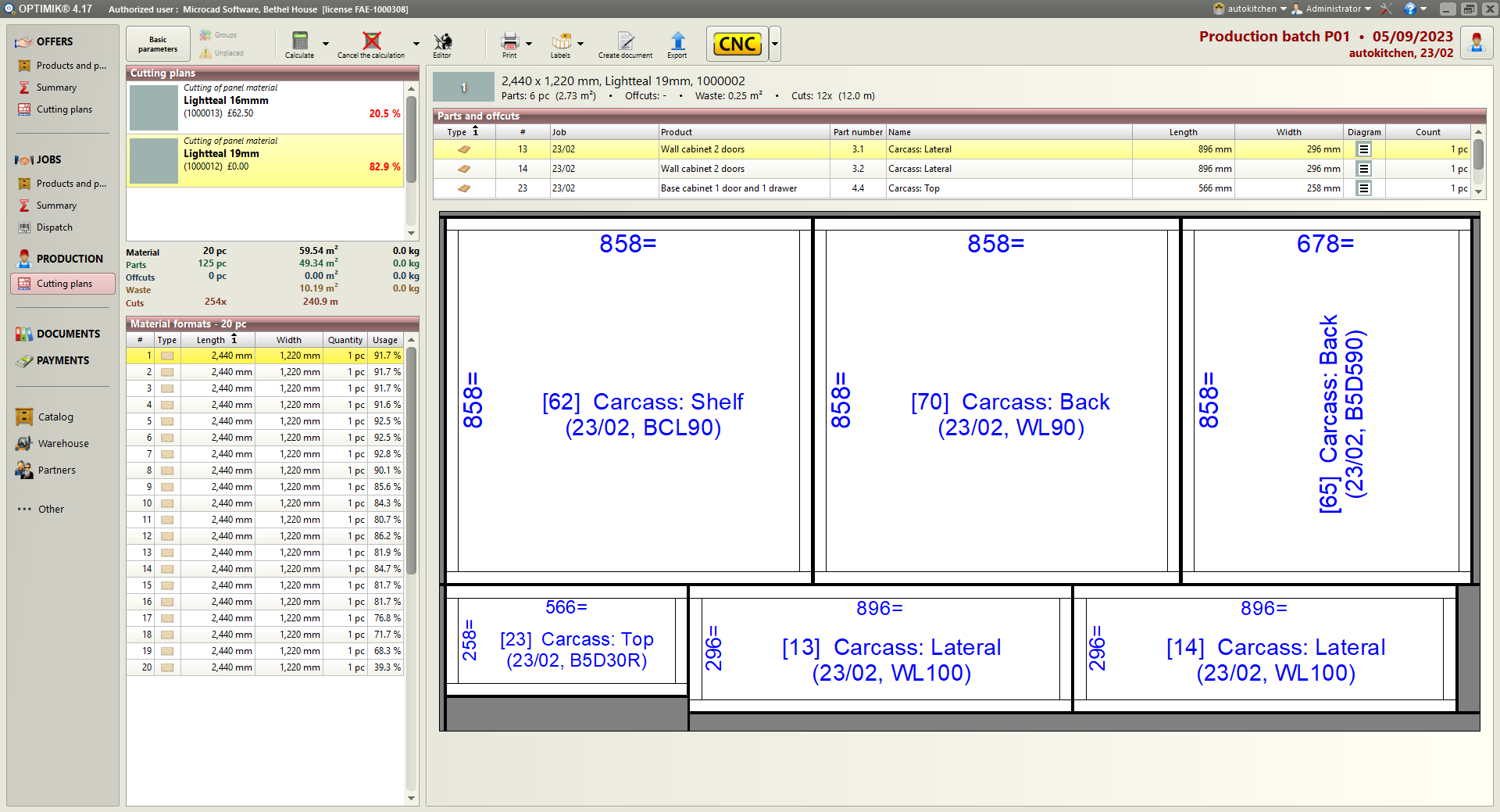 You can then easily create actual jobs from the accepted offers, which you can then send to Production all at once or in parts. Here, you can achieve additional material savings by creating a shared cutting plan for components from several orders.